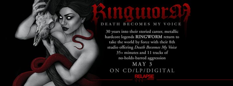 Clevo bruska RINGWORM oslaví 30 let na scéně vydáním nového alba „Death Becomes My Voice“, které bude jejich už osmým v pořadí. Vyjde za dva měsíce, konkrétně 3. května opět na Relapse – stejně jako jejich předchozí dvě „Hammer of the Witch“ (2014) a „Snake Church“ (2016), ale už nyní si z něho můžete poslechnout titulní singl tady. Kromě tohoto otvíráku bude obsahovat dalších 10 kousků (plus dva bonusy), nahraných v Mercenary Studios a Spider Studios. Mix má na svědomí Taylor Young (Nails, Twitching Tongues, Cannabis Corpse), mastering proběhl v Audiosiege (Integrity, Full of Hell, Iron Reagan).